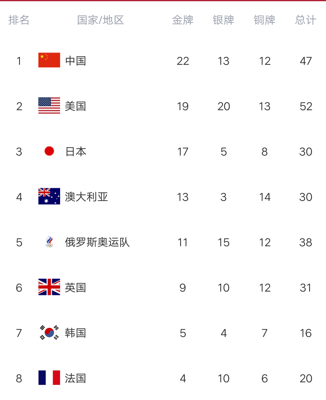 能预测一下本届奥运会的金牌榜了吗? 美国还可以拿几块金牌? 另外,向所有参与比赛的运动员致敬,包括中共们。 saturday, august 7, 2021 (gmt+9) time in tokyo, japan. Shenzhen ecig expo shenzhen ecig expo 2021. #country gold silver bronze total. 对有些国家来说,奥运会奖牌榜以及运动员的成绩只是他们炫耀自身强大和本国政治制度优越性的道具。 奖牌成了国家成就的象征。 在这里,奖牌榜成了激发民族主义的强心剂,成了不容讨论的政治禁区 © 2021年 德国之声版权声明:本文所有内容受到著作权法保护,如无德国之声特别授权,不得擅自使用。